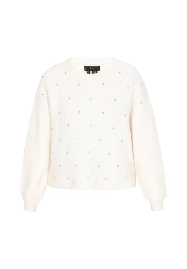 Design: Gevoerde zoom/rand; Type sluiting: Slip; Materiaal: Knitwear; Halstype: Ronde hals; Motief: Effen; Details: Parels; Extra's: Op staal naden; Pasvorm: Normale pasvorm; Armlengte: Lange mouw; Lengte: Normale lengte