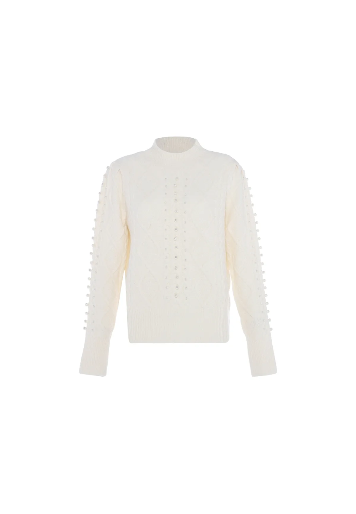 Design: Geribbelde kraag; Materiaal: Knitwear; Halstype: Opstaande kraag; Motief: Effen; Details: Parels; Extra's: Met textuur; Pasvorm: Normale pasvorm; Armlengte: Lange mouw; Lengte: Normale lengte