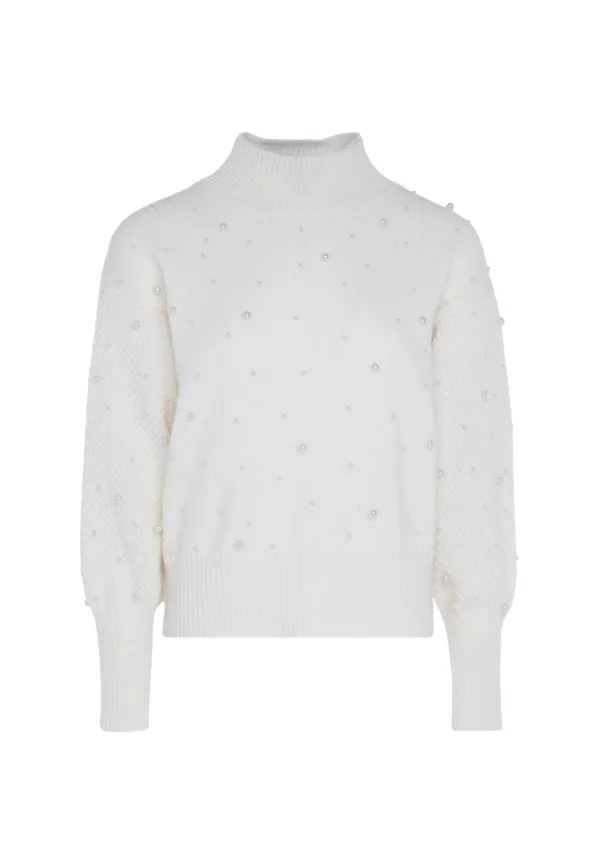 Of het nu gaat om feestelijke evenementen, een diner of gewoon overdag, deze Faina-trui met kralen zal je van dag tot avond vergezellen. Het fijngebreide patroon met structuurbreisel op de mouwen heeft een geribde opstaande kraag en comfortabele geribde manchetten. Pullover trui