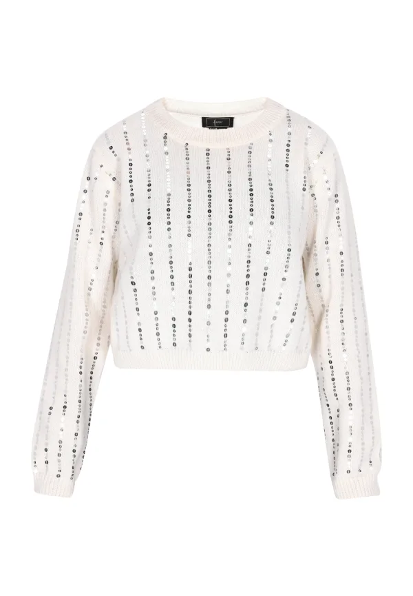 Design: Extra lange mouwen; Materiaal: Knitwear; Halstype: Ronde hals; Motief: Gestreept; Details: Pailletten; Extra's: Glitterend; Pasvorm: Losse pasvorm; Armlengte: Lange mouw; Lengte: Korte pasvorm