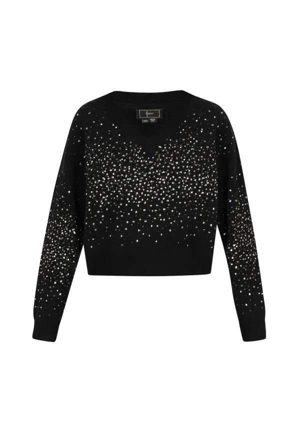 Design: Geribbelde kraag, Geribd ceintuurtje; Type sluiting: Slip; Materiaal: Knitwear; Halstype: V-hals; Motief: Effen; Details: Pailletten; Extra's: All-over patroon, Label patch/label flag, Op staal naden; Pasvorm: Normale pasvorm; Armlengte: Lange mouw; Lengte: Normale lengte