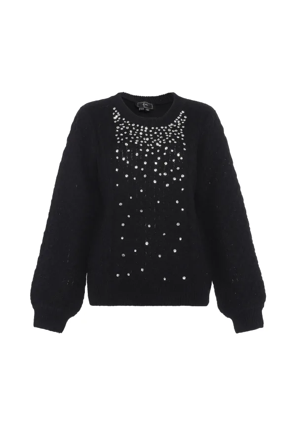 Halstype: Ronde hals; Motief: Effen; Details: Sierstenen; Pasvorm: Normale pasvorm; Armlengte: Lange mouw; Lengte: Normale lengte