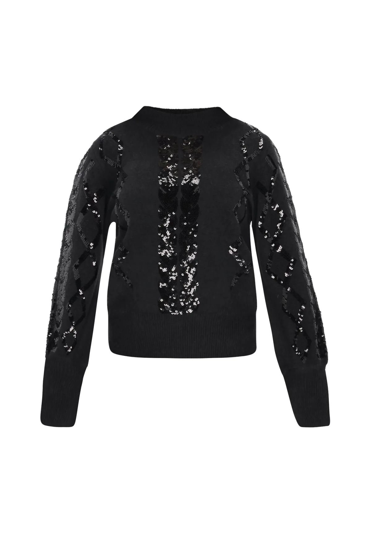 Design: Geribbelde kraag, Pofmouwen, Geribd ceintuurtje, Staande kraag; Type sluiting: Slip; Materiaal: Knitwear; Halstype: Opstaande kraag; Motief: Effen; Details: Pailletten; Extra's: Voelt zacht aan; Pasvorm: Normale pasvorm; Armlengte: Lange mouw; Lengte: Normale lengte