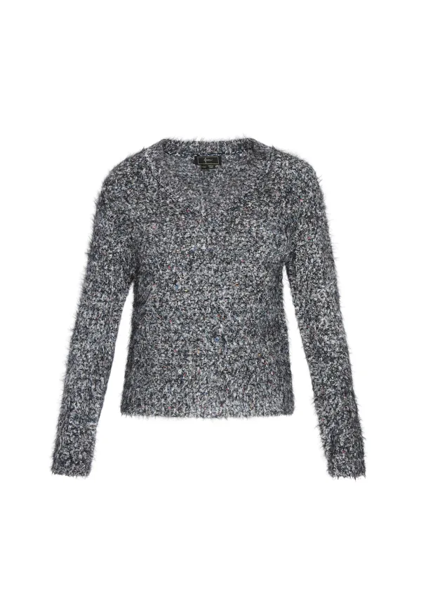 Design: Rechte zoom; Type sluiting: Slip; Halstype: V-hals; Motief: Mélange; Extra's: Gestructureerd oppervlak; Pasvorm: Normale pasvorm; Armlengte: Lange mouw; Lengte: Normale lengte
