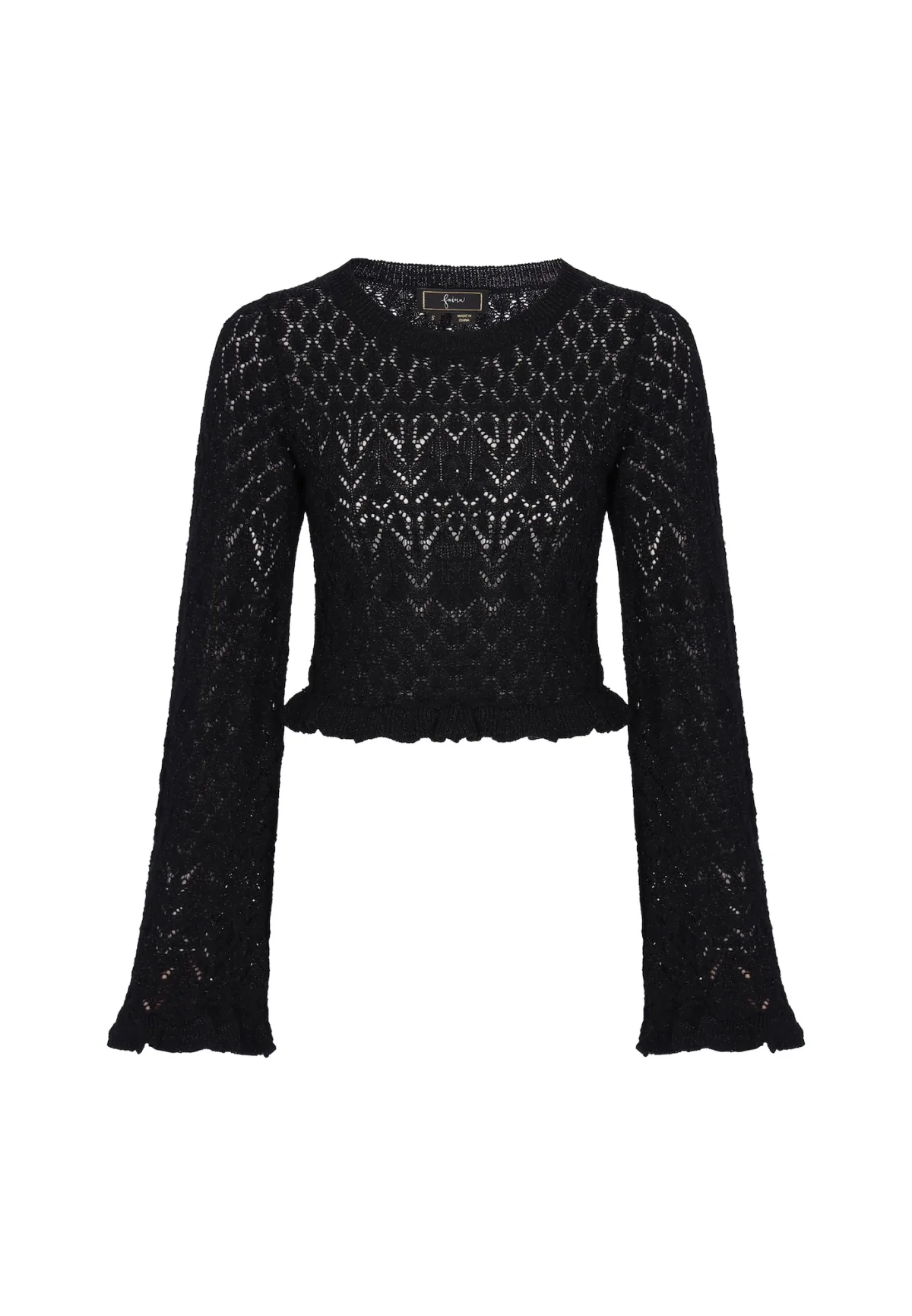 Design: Extra lange mouwen, Trompetmouwen; Materiaal: Knitwear; Halstype: Ronde hals; Motief: Effen; Details: Ruches; Extra's: Op staal naden, Perforatie; Pasvorm: Normale pasvorm; Armlengte: Lange mouw; Lengte: Normale lengte