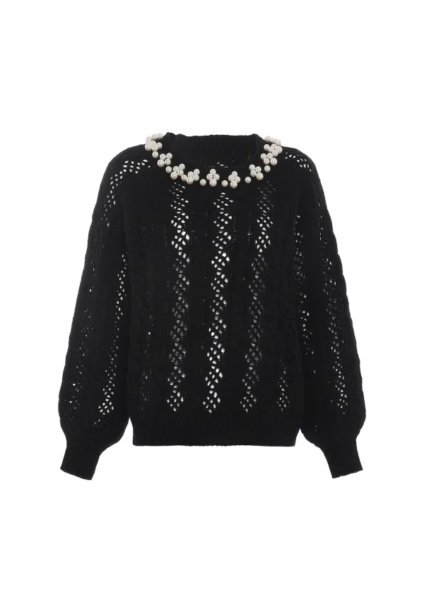 Halstype: Ronde hals; Motief: Effen; Details: Mesh, Parels; Pasvorm: Normale pasvorm; Armlengte: Lange mouw; Lengte: Normale lengte