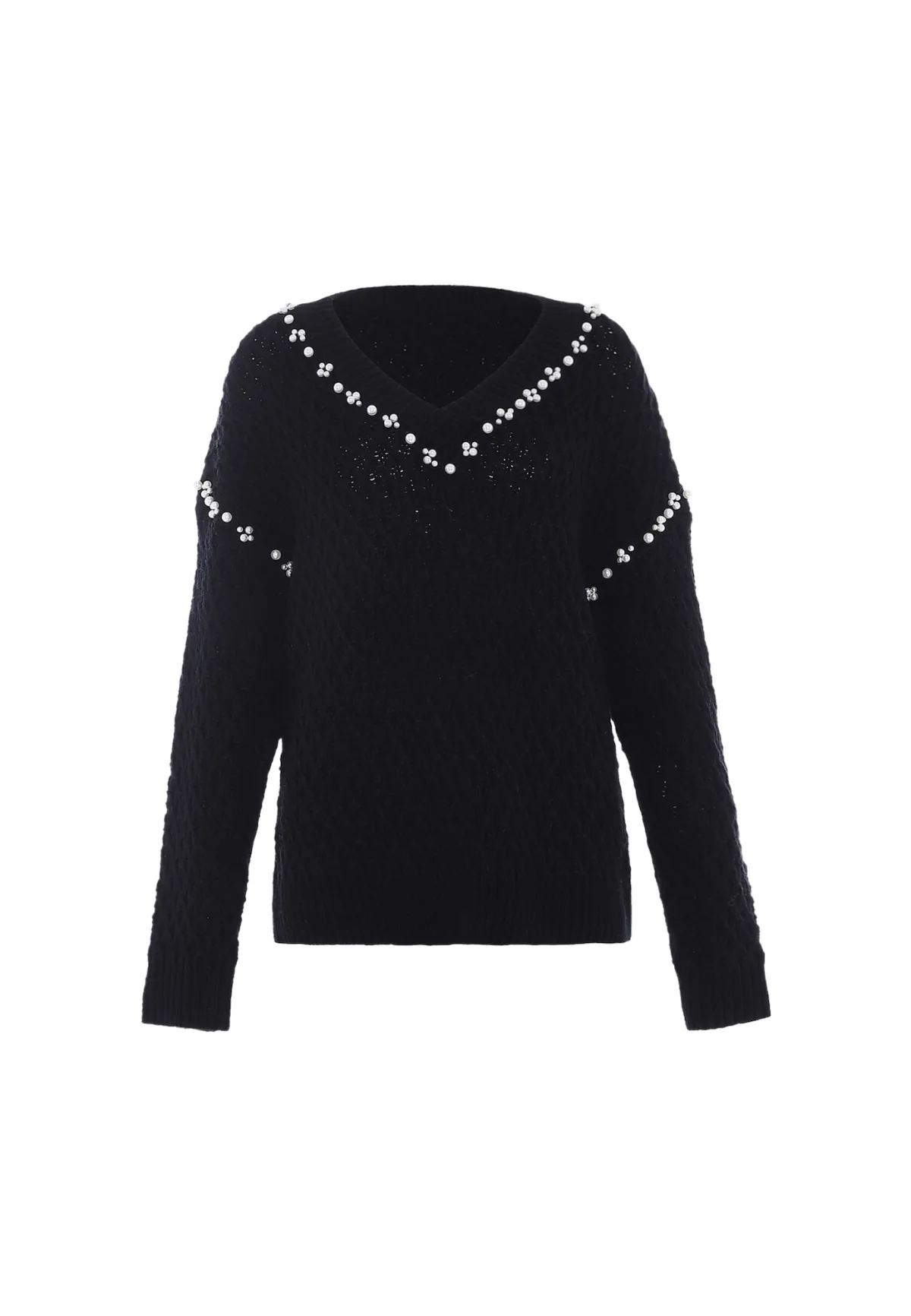 Maak kennis met een elegante trui uit de Fashion Look-collectie. Deze regular-fit trui heeft een V-hals en lange mouwen voor een stijlvolle look. Dit gebreide item is versierd met parels en heeft een ajourmotief voor een elegante touch. Perfect voor casual of semi-formele gelegenheden, deze trui straalt chic en comfort uit. Pullover trui