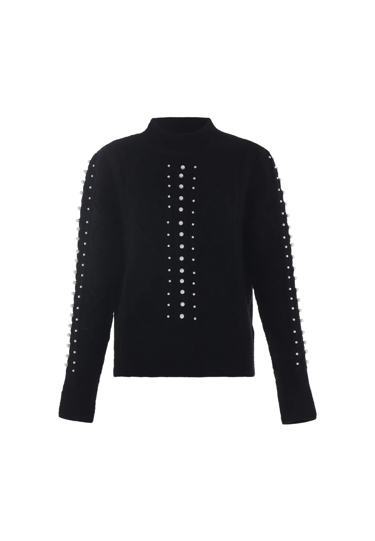 Design: Geribd ceintuurtje; Materiaal: Knitwear; Halstype: Opstaande kraag; Motief: Effen; Details: Parels; Extra's: Patroon gebreid; Pasvorm: Normale pasvorm; Armlengte: Lange mouw; Lengte: Normale lengte