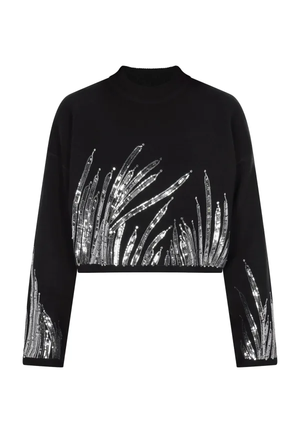 Geef je stijl een boost met deze cropped trui met hoge hals en lange mouwen. Glinsterende pailletten voegen een vleugje glamour toe. Dit stuk zorgt voor comfort en warmte. Jumper