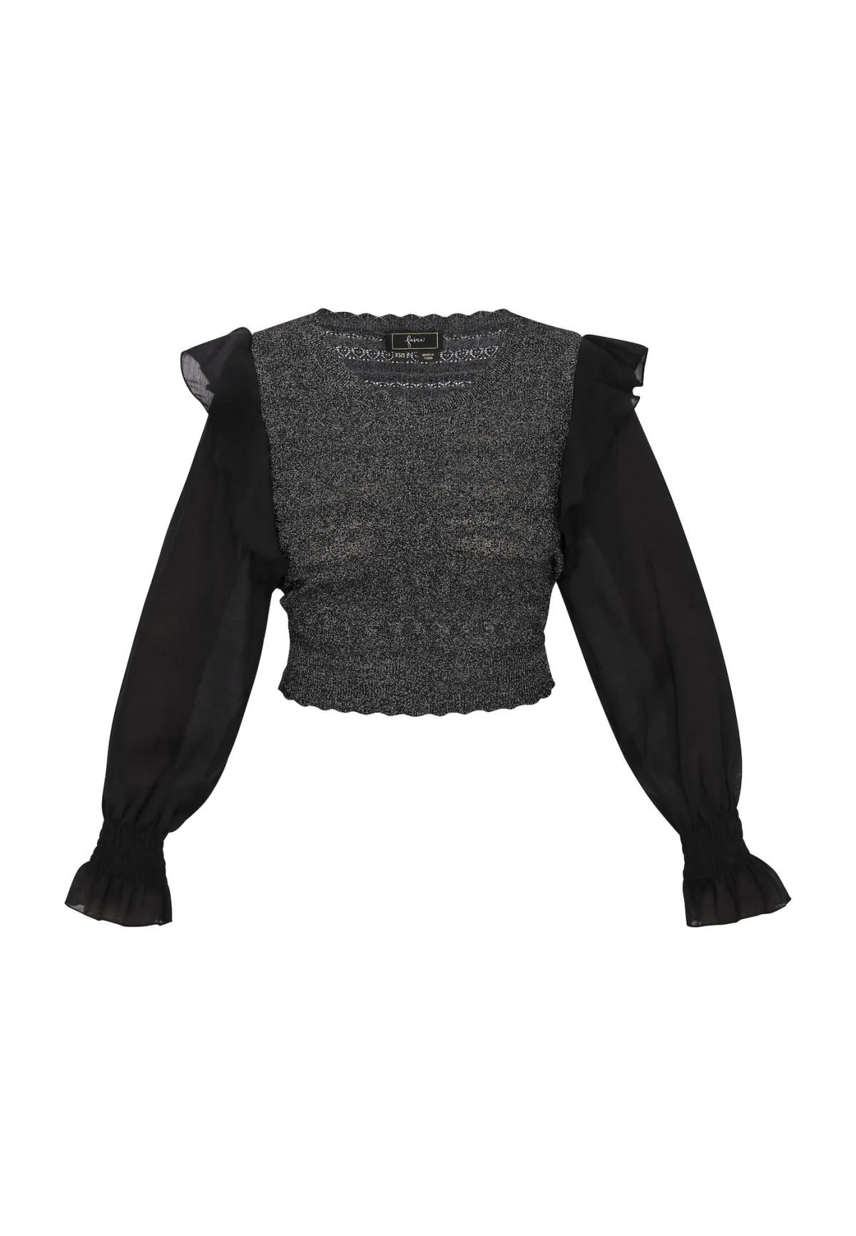 Design: Geribbelde kraag; Type sluiting: Slip; Materiaal: Knitwear; Halstype: Ronde hals; Motief: Effen; Details: Ruches; Extra's: Glitterend; Pasvorm: Normale pasvorm; Armlengte: Lange mouw; Lengte: Normale lengte