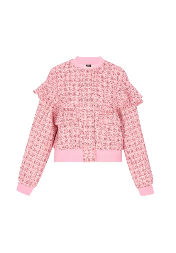 Design: Geribbelde kraag, Geribd ceintuurtje, Opzet-/flapzak; Type sluiting: Ritssluiting; Type jas: Bomberjack; Voering: Licht gevoerd; Materiaal: Bouclé; Motief: Mélange; Extra's: Op staal naden, Met textuur; Pasvorm: Normale pasvorm