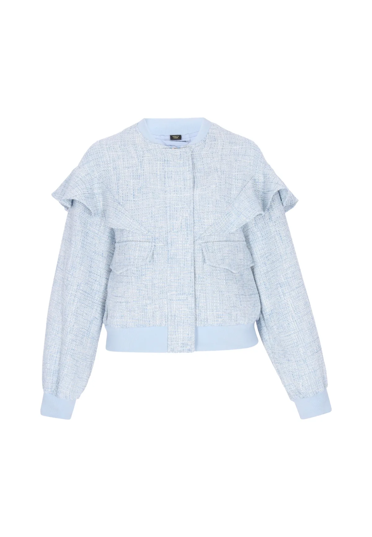 Design: Geribd ceintuurtje, Opzet-/flapzak; Type sluiting: Ritssluiting; Type jas: Bomberjack; Voering: Licht gevoerd; Motief: Mélange; Extra's: Effect garen, Op staal naden; Pasvorm: Normale pasvorm