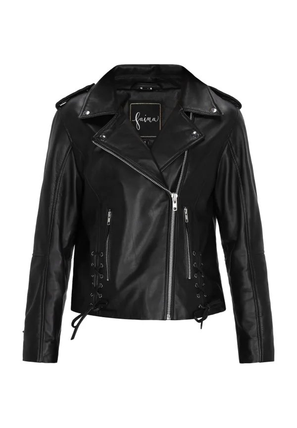 Design: Ritszakken aan de zijkant; Type sluiting: Ritssluiting; Type jas: Bikerjack; Voering: Licht gevoerd; Materiaal: Leer; Motief: Effen; Extra’s: Studs; Pasvorm: Slanke pasvorm