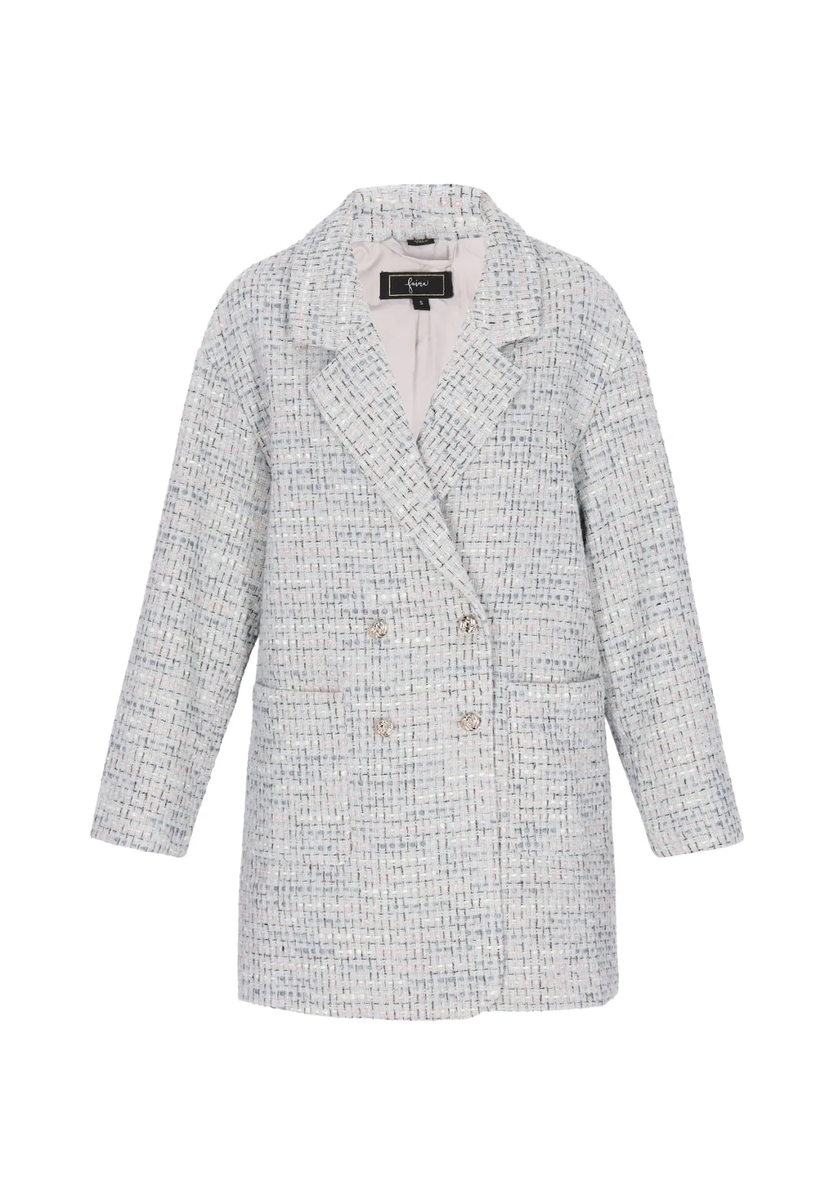 Type mantel: Klassieke mantel; Design: Opgezette zakken; Type sluiting: Knoopsluiting; Voering: Licht gevoerd; Materiaal: Bouclé; Extra's: Bouclé; Pasvorm: Normale pasvorm; Lengte: Normale lengte
