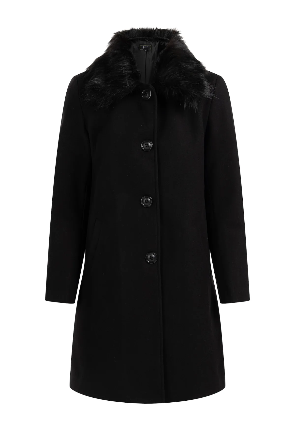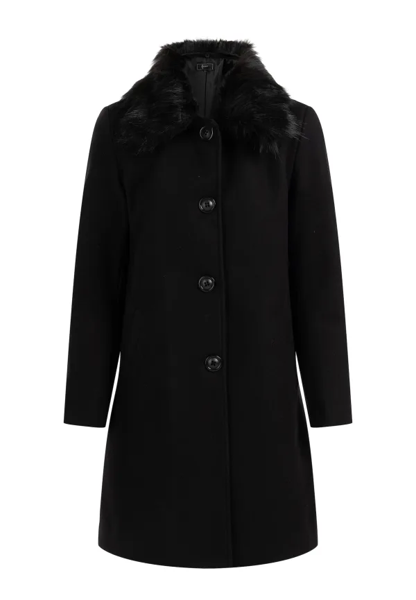 Type mantel: Klassieke mantel; Design: Zakken aan de zijkant; Type sluiting: Knoopsluiting; Voering: Licht gevoerd; Motief: Effen; Extra’s: Op staal naden, Met faux bont trim; Pasvorm: Normale pasvorm; Lengte: Normale lengte