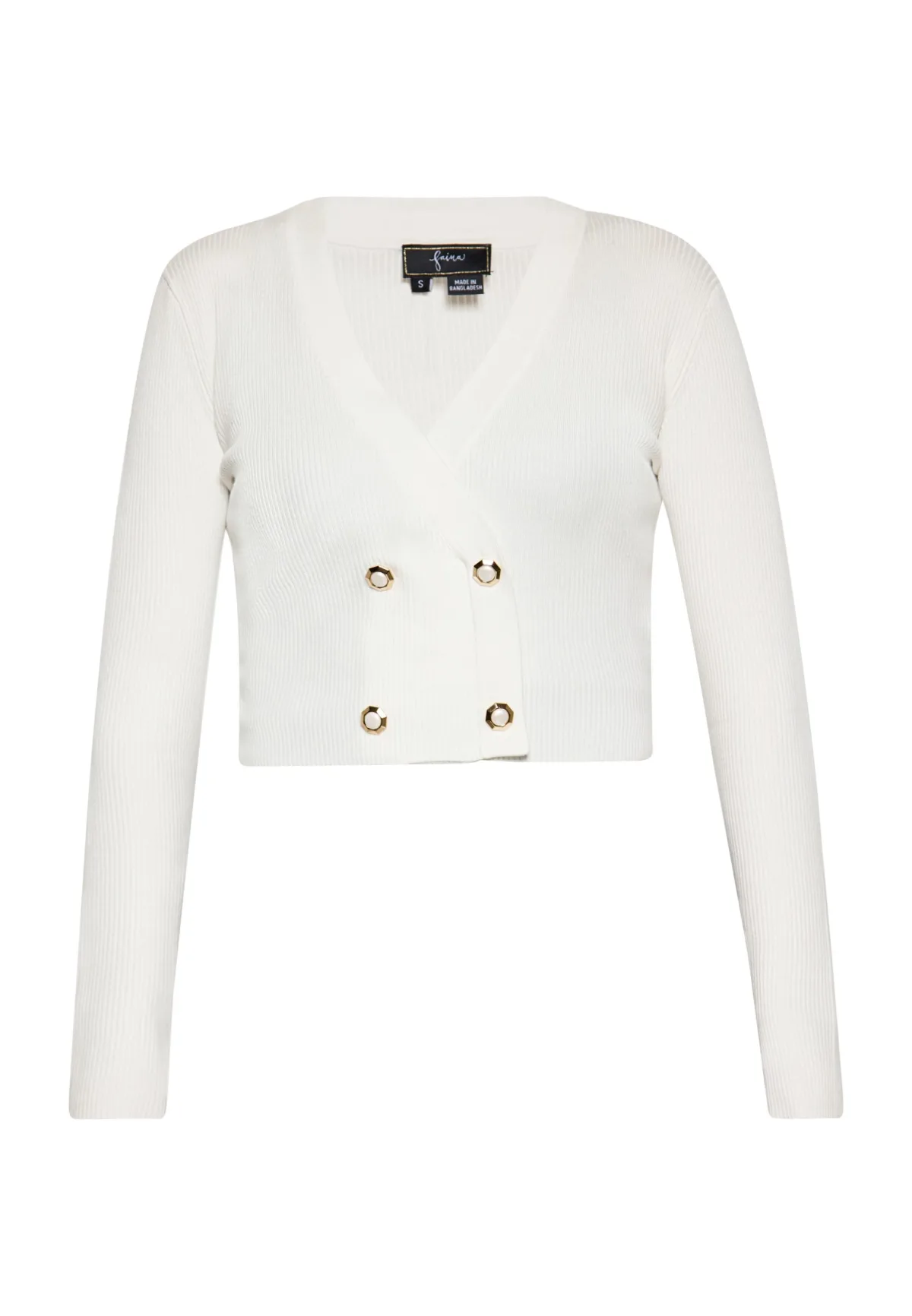 Ontdek de perfecte mix van stijl en comfort met dit gebreide damesvest. Het cropped silhouet, de V-hals en de dubbele rij knopen aan de voorkant creëren een chique look, terwijl de geribbelde textuur een vleugje verfijning toevoegt. Met lange mouwen, getailleerd design en grote decoratieve knopen is dit vest zowel gezellig als casual. Ideaal voor dagelijks gebruik. Vest