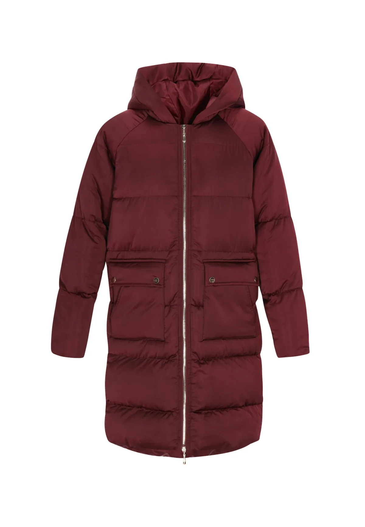 Type mantel: Gewatteerde jas; Design: Ritssluiting, Met capuchon, Opzet-/flapzak; Type sluiting: Ritssluiting; Voering: Licht gevoerd; Motief: Effen; Extra's: Stiksels; Pasvorm: Normale pasvorm; Lengte: Lange pasvorm