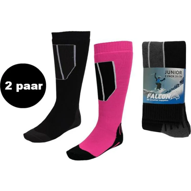 Falcon Max Jr. Skisokken Mooie ski sokken voor de jongen vandalen op de piste, deze sokken worden geleverd in een set van twee. De sokken vallen net iets onder de knie en hebben een mooi voetbed in de sok zitten. De sokken zijn bijna geheel naadloos enkel en alleen bij de tenen is een naad te vinden. Niet te vergeten, ze zijn ook nog lekker warm. Specificaties Merk: Falcon Modelnaam: Max Modelnummer: Max.pink Artikelgroep: Jr. Skisokken Kleur: Pink