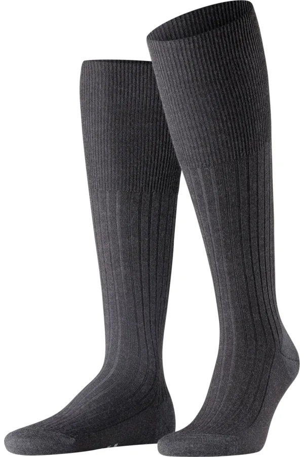 FALKE Bristol Pure effen geribd wol kniekousen heren grijs -...