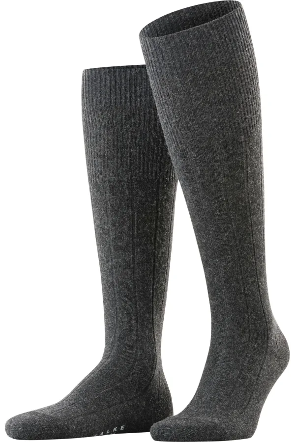 FALKE Lhasa Rib lang eenkleurig wol kasjmier kniekousen heren grijs