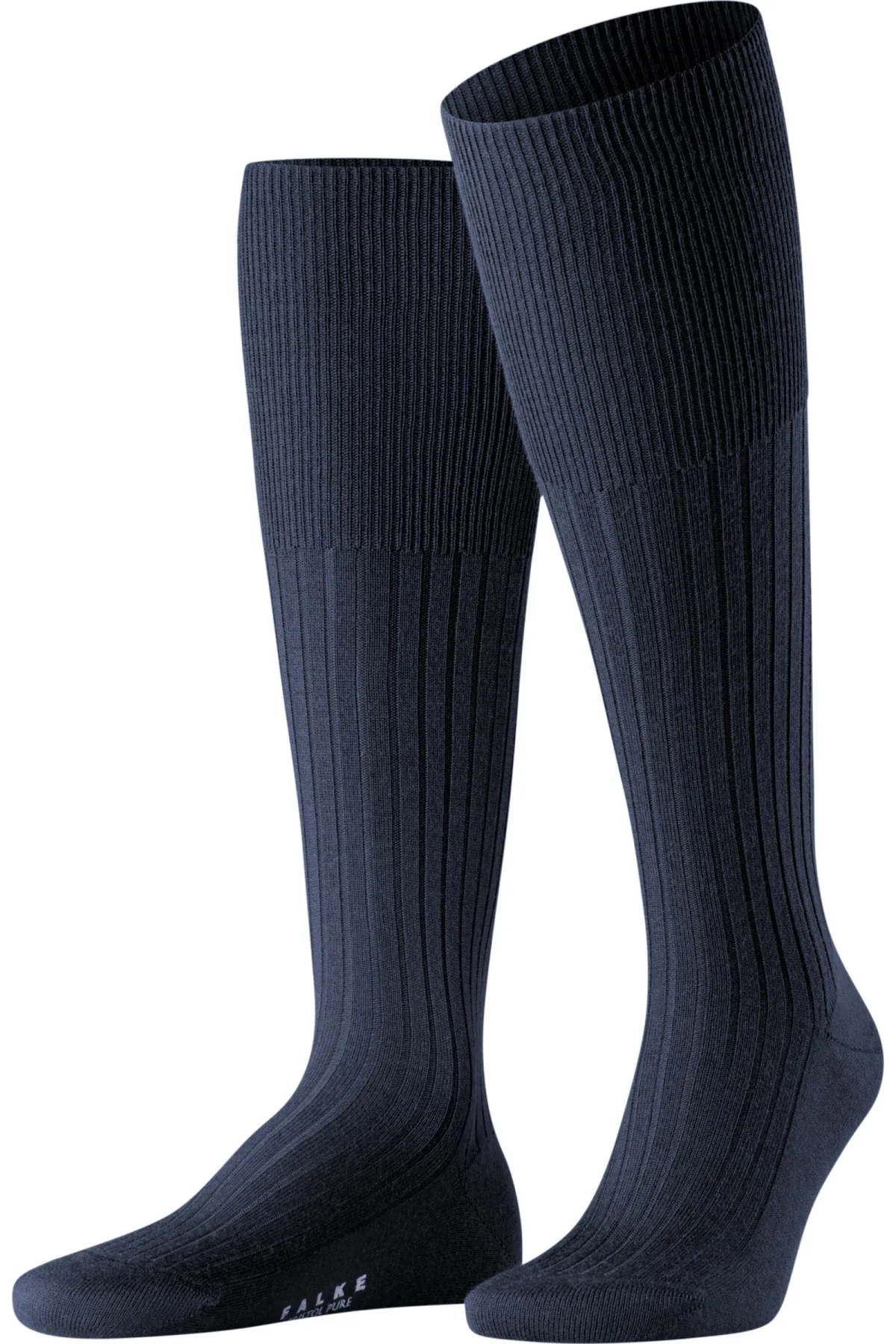 FALKE Bristol Pure effen geribd wol kniekousen heren blauw -...