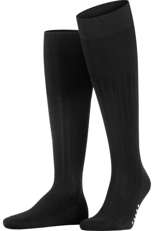 Kniekousen van FALKE voor heren;Mix van biologisch katoen;Elastische ribboordjes;Model 'MILANO';Labeldetail;Riblook
