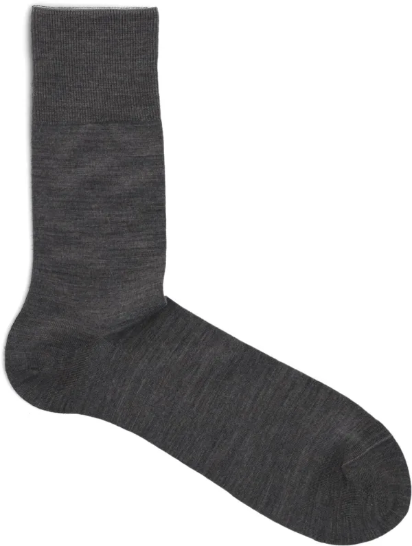 Grijze sokken voor heren van het merk Falke. Dit paar sokken is uitgevoerd in de kleur grijs. Het materiaal bestaat uit 60% merinowol, 23% katoen, 15% polyamide en 2% elastaan.
