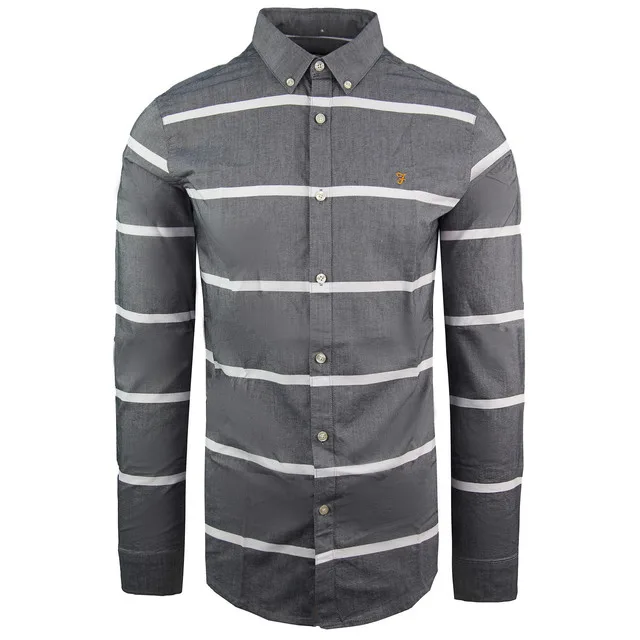 Farah Merrick Slim Fit Oxford Overhemd Lange Mouw Heren Streep Top F4WS6041 412