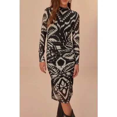 FARM Rio Pineapple Ikat Black Tulle Midi Dress Prijzen
