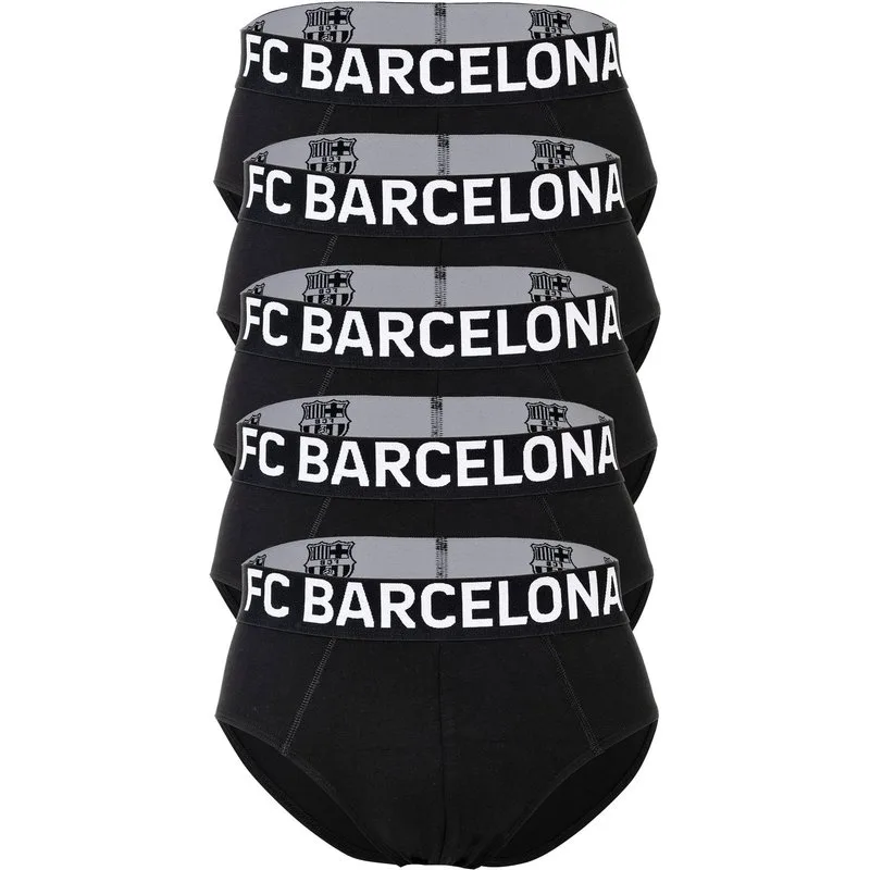 FC Barcelona Heren Slips in 5-pack. Originele FC Barcelona slips van hoogwaardige katoenmix met elastaan. Logotailleband met FC Barcelona opschrift.
