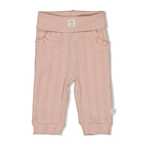 Deze lichtroze Feetje meisjesbroek van katoen is een zachte basic voor elke dag, met stijlvolle details die direct opvallen. Het ajourpatroon en de subtiele ruches geven de broek een zachte, meisjesachtige uitstraling, terwijl de regular fit zorgt voor voldoende bewegingsvrijheid. Ideaal voor actieve kleintjes die graag kruipen, spelen en ontdekken.Lichtroze broek met speelse details Gemaakt van 100% katoen, geschikt om elke dag te dragen op de gevoelige kinderhuid Regular fit met lange pijpen, geschikt voor het hele seizoen Lichtroze kleur en effen design, gemakkelijk te combineren met rompers en tops Ajourdetails en ruches voor een meisjesachtige, verzorgde look Elastische tailleband, waardoor de broek makkelijk aan en uit gaat Voorzien van zakken aan de voorkant, praktisch en decoratief Geschikt als babybroek en casual broek voor alledaags gebruikComfort in het dagelijks levenDe katoenen stof en de elastische tailleband maken deze broek praktisch voor elke dag. Of het nu gaat om een dag thuis, een uitstapje of een bezoekje aan de opvang, de broek biedt veel bewegingsruimte en blijft goed zitten tijdens het spelen.Feetje voor de allerkleinstenFeetje richt zich op comfortabele baby- en kinderkleding met doordachte details. De materialen zijn gekozen met het oog op dagelijks gebruik en het design sluit aan bij wat ouders graag zien: zacht, verzorgd en gemakkelijk te combineren.Een praktische basisbroek die comfort en een verzorgde uitstraling combineert in één kledingstuk.