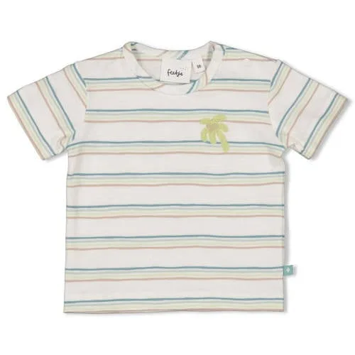 Voor elke speelse dag is een goed basisshirt onmisbaar. Dit Feetje T-shirt voor jongens in ecru en blauw combineert een frisse streepprint met het comfort dat je kind nodig heeft. De korte mouwen en ronde hals maken het een praktisch shirt voor alledaags gebruik, of het nu gaat om spelen, naar de opvang gaan of een dagje uit.Frisse strepen en fijn draagcomfort Gemaakt van 94% katoen en 6% elastaan, wat zorgt voor een zachte stof die soepel met elke beweging meebeweegt. Korte mouwen, ideaal voor warme dagen of onder een vest wanneer het wat frisser is. Ronde hals voor een makkelijke pasvorm en prettig gevoel rond de nek. Ecru met blauwe strepen, een rustige kleurcombinatie voor elke dag. Zonder borstzak, waardoor de streepprint goed tot zijn recht komt.Elke dag klaar om te spelenDit T-shirt is gemaakt om vaak te dragen en makkelijk te combineren. Het shirt trek je zo aan bij je zoon voor school, speelafspraakjes of een ontspannen dag thuis. De elastische stof blijft prettig zitten, ook als er veel wordt gerend en geklommen.Feetje: vertrouwd voor de allerkleinstenFeetje is een bekend merk binnen baby- en kinderkleding en biedt comfortabele basics met veel aandacht voor pasvorm en zacht aanvoelende stoffen. De collecties zijn praktisch, zacht en afgestemd op het dagelijkse leven met kinderen, zodat jij met een gerust gevoel kiest voor kleding waarin je kind zich vrij kan bewegen.Een T-shirt dat elke dag weer uit de kast gepakt mag worden.
