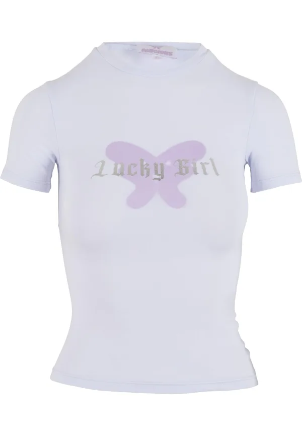 Felicious Shirt 'Lucky Girl ' lavendel / zilver / wit