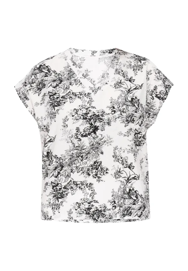Blouse type: Blouseshirt; Design: Gesneden mouw; Materiaal: Viscose; Motief: Bloemenprint; Kraag: Zonder kraag; Extra's: All-over patroon; Pasvorm: Normale pasvorm; Armlengte: Kwartmouw; Lengte: Normale lengte