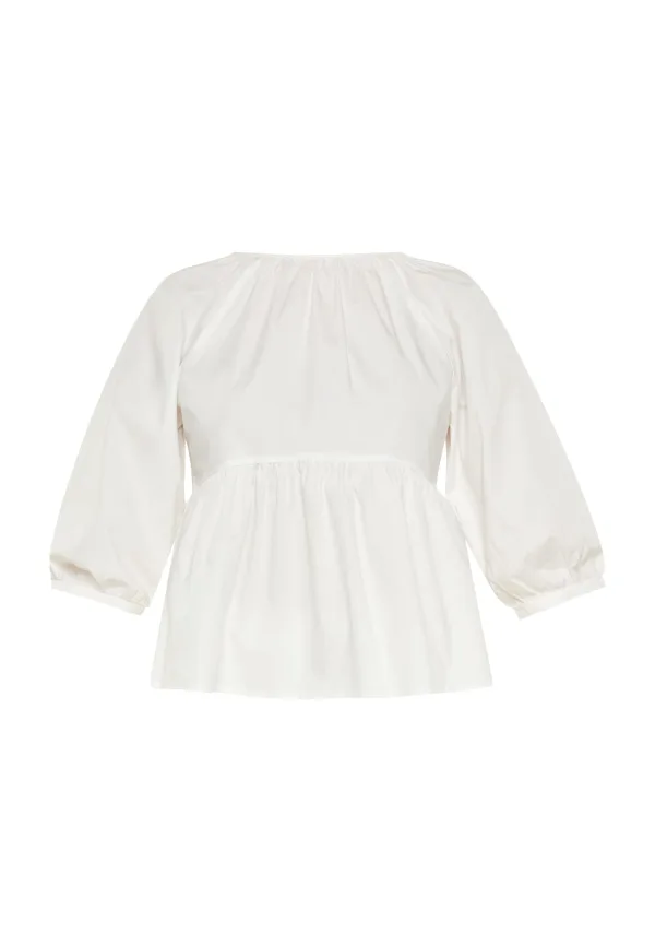 Blouse type: Blouseshirt; Design: Om te knopen/binden; Materiaal: Katoen; Motief: Effen; Kraag: Zonder kraag; Details: Cut-outs, Gedrapeerd; Extra's: Op staal naden; Pasvorm: Losse pasvorm; Armlengte: Driekwart mouw; Lengte: Normale lengte