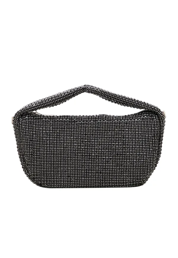 Maak kennis met onze prachtige handtas met een sterk reflecterende buitenkant met juwelen. Deze tas is versierd met duizenden kleine, cirkelvormige versieringen die een uniform en overzichtelijk patroon creëren. Dankzij de enkele draagriem is deze tas ideaal voor avondkleding of speciale gelegenheden.