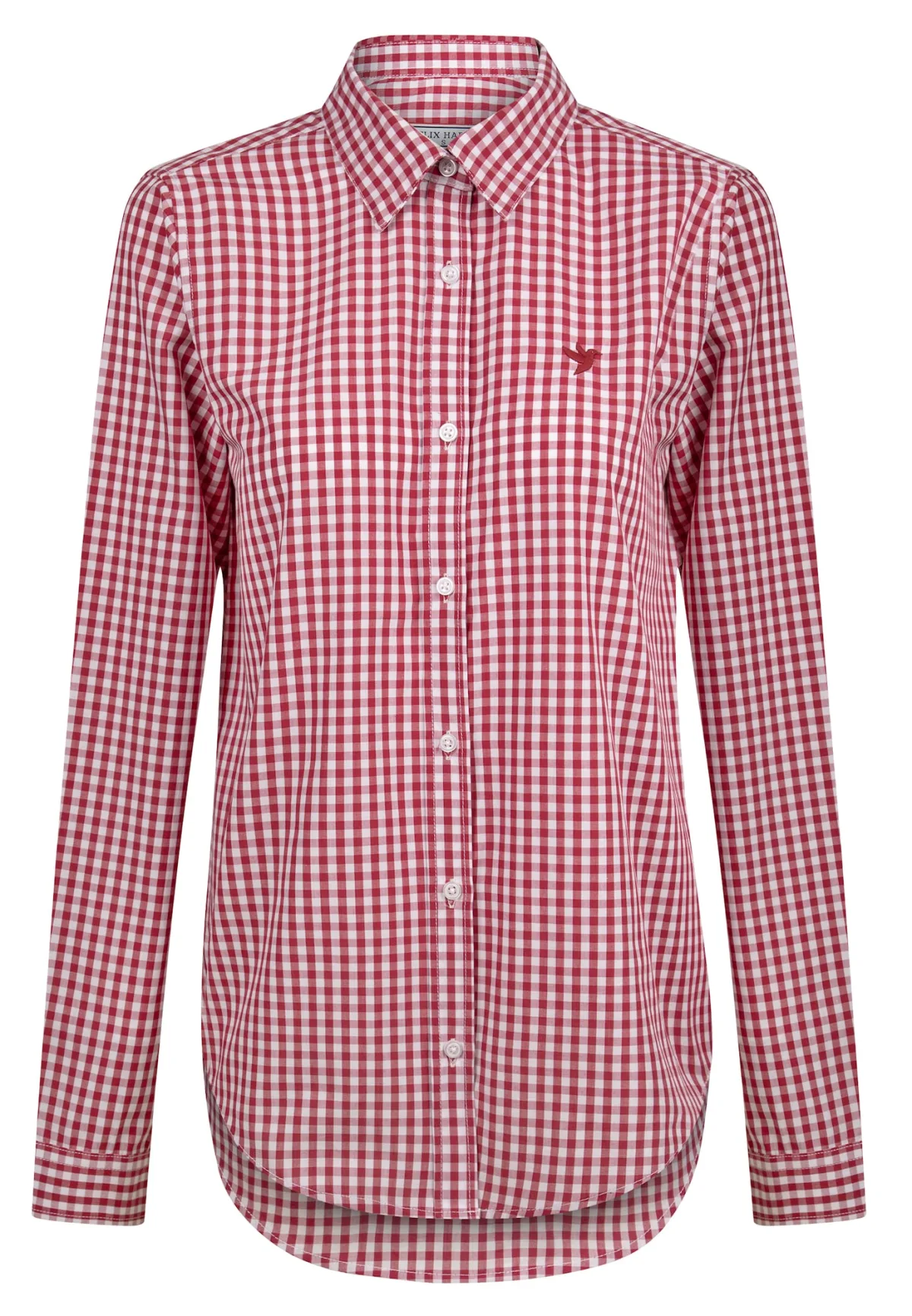Blouse type: Klassieke blouse; Design: 1-knoops manchetten, Ronde zoom; Type sluiting: Knoopsluiting; Materiaal: Katoen; Motief: Geruit; Kraag: Kentkraag; Details: Borduursels; Extra's: All-over patroon; Pasvorm: Normale pasvorm; Armlengte: Lange mouw; Lengte: Normale lengte