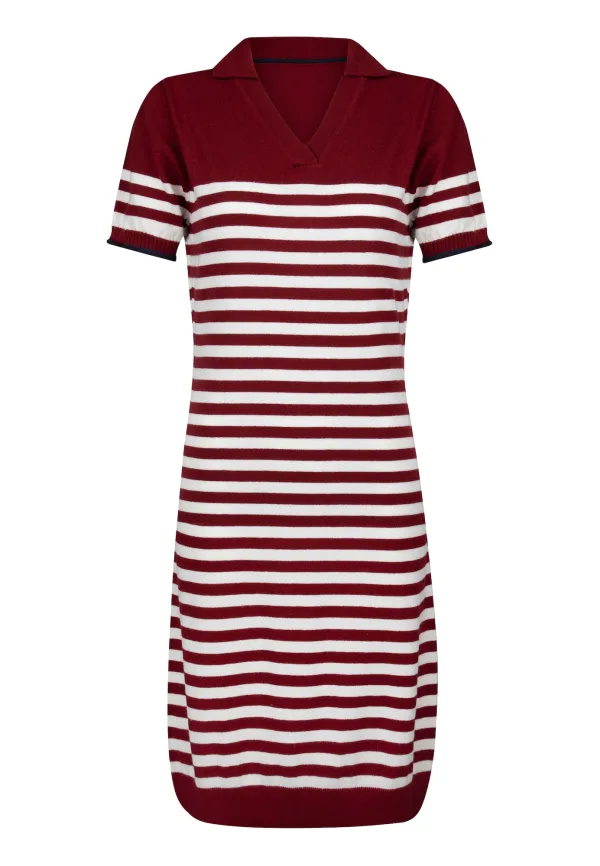 Materiaal: Knitwear; Halstype: Polokraag; Motief: Gestreept; Details: Borduursels; Lengte: Knielengte; Pasvorm: Normale pasvorm; Armlengte: Kwartmouw