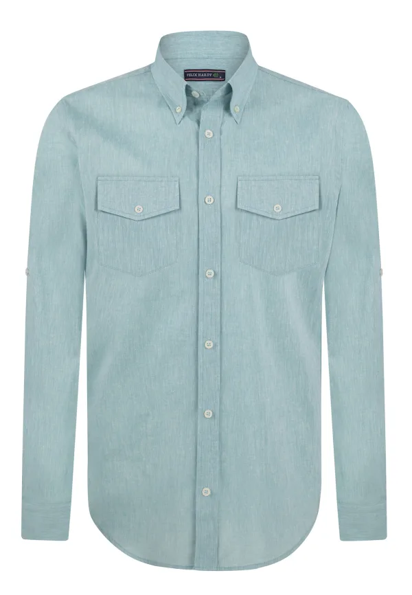 Felix Hardy Linnen Katoen Blend Shirt - Overhemd Heren Turkoois...