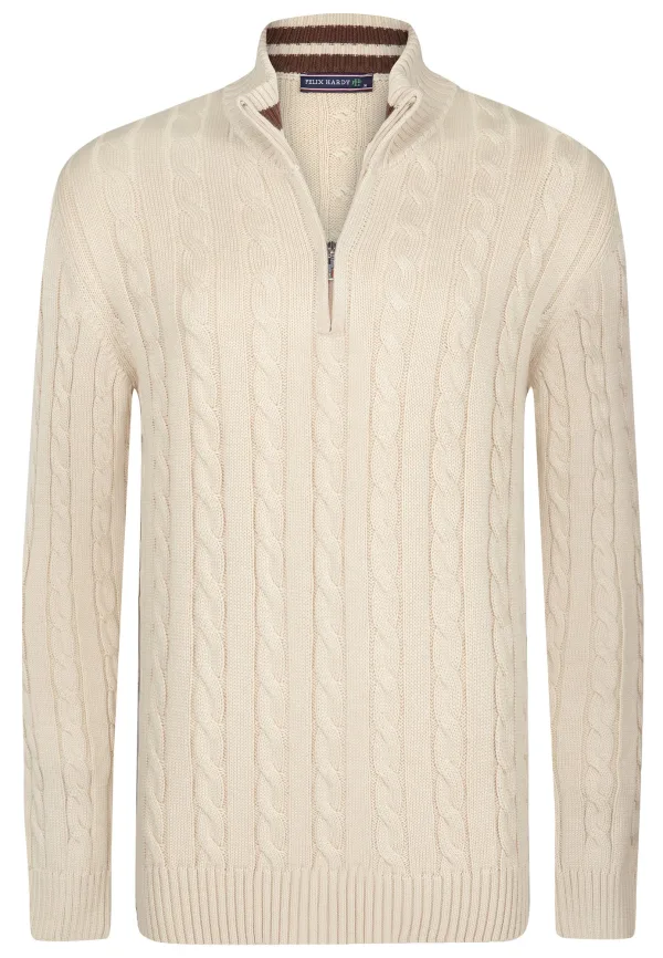 Felix Hardy Kabelgebreide Trui Met Halve Rits - 100% Katoen...