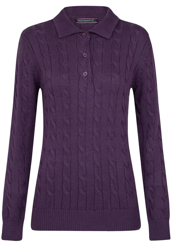 Felix Hardy Gebreide Polo Trui Polo Kraag Sweater Dames Paars...
