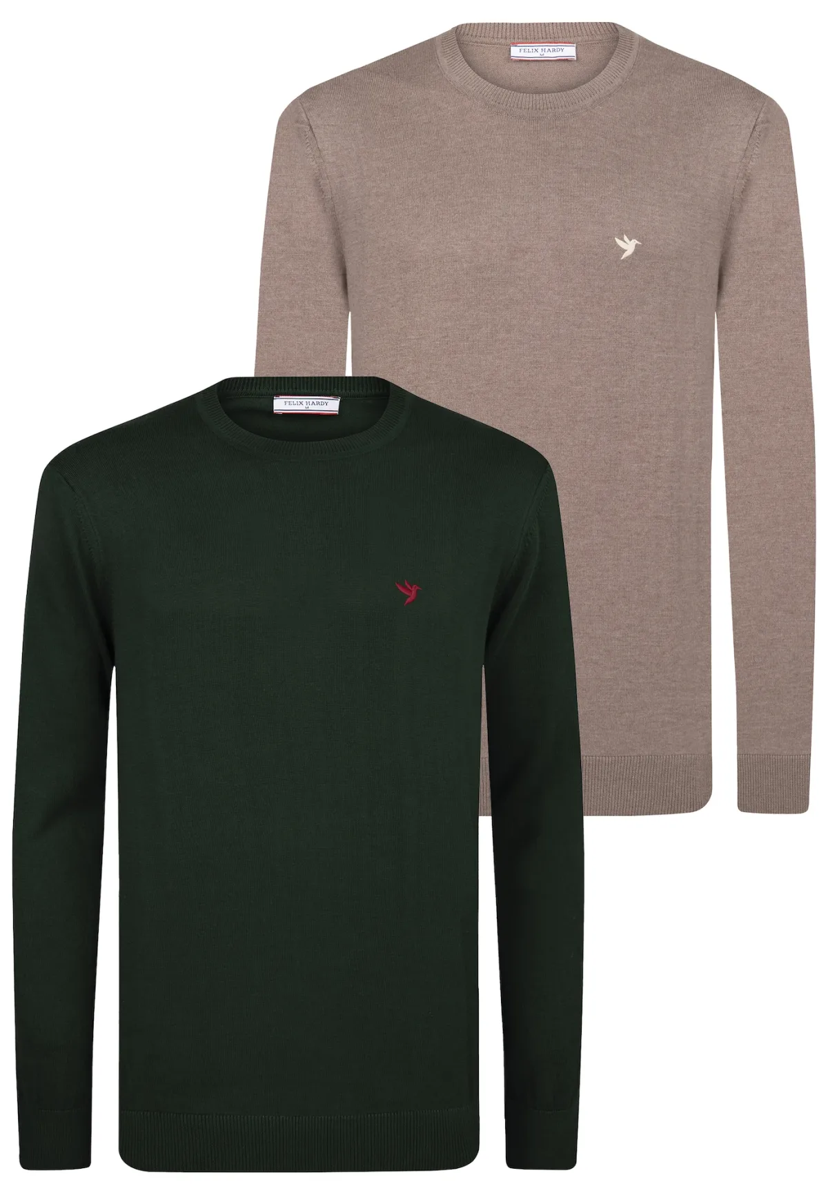 Felix Hardy Sweater Ronde Hals - 2 Pack Heren Bruin-Groen...