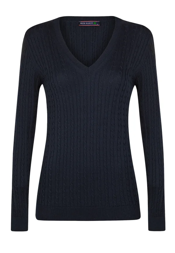 Felix Hardy Kabelgebreide Trui Met VHals 100 Katoen Dames Navy...