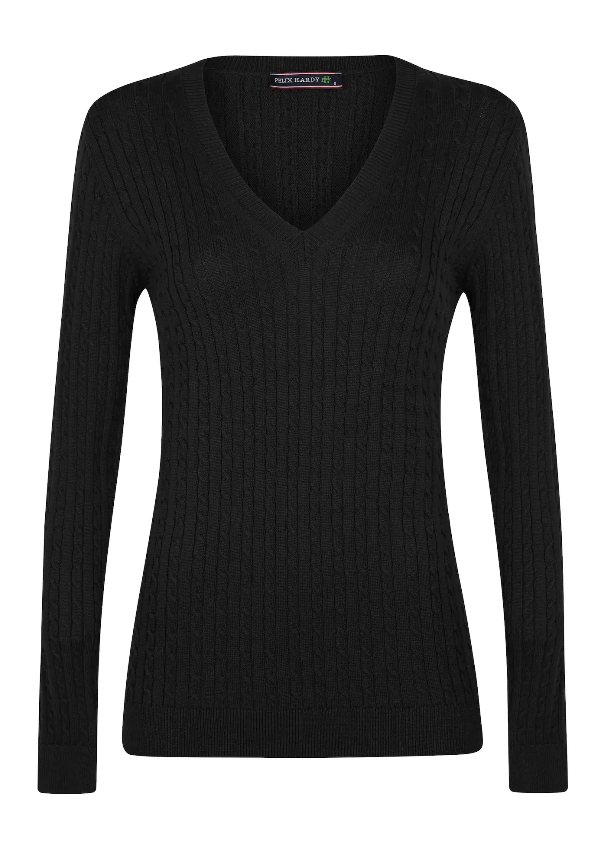 Felix Hardy Kabelgebreide Trui Met VHals 100 Katoen Dames Zwart...
