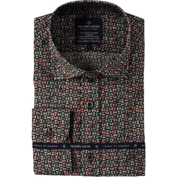 Casual heren shirt van Fellows United met een kleurrijk allover dessin. Dit lange mouw overhemd heeft een button-under kraag en handig borstzakje. Modern fit Borstzakje 100% Katoen Kleurnummer: 172