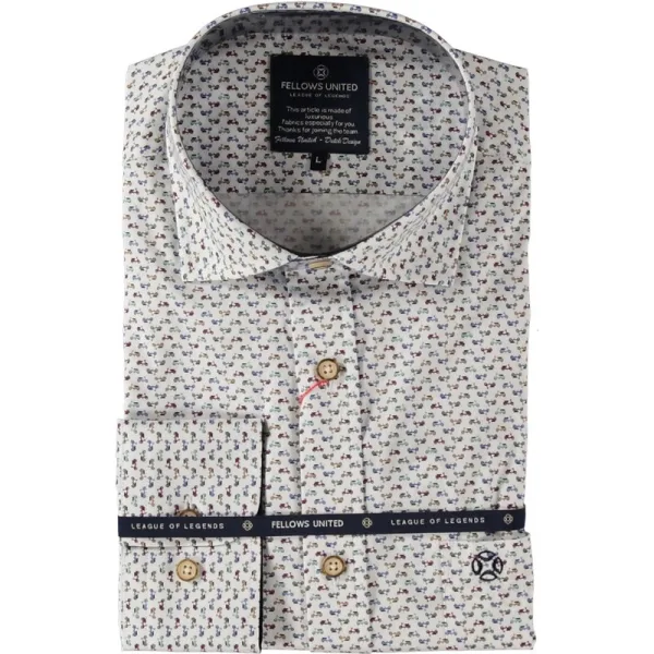 Casual heren shirt met lange mouwen en een allover print met allemaal kleine Vespa's. Modern fit Borstzakje 100% Katoen Kleurnummer: 118