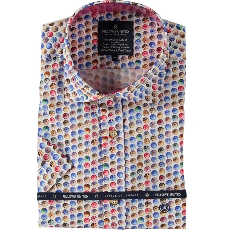 Fris gekleurd heren overhemd met lange mouwen. Dit shirt van Fellows United heeft een handig borstzakje en een gekleurd allover dessin. Modern fit Borstzakje 100% Katoen Kleurnummer: 165