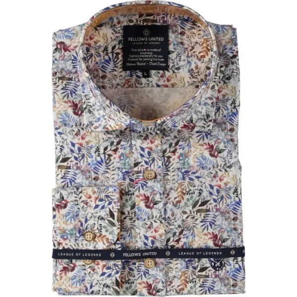 Fellows United overhemd met lange mouwen en een allover dessin van bladeren. Modern fit Borstzakje 100% Katoen Kleurnummer: 153