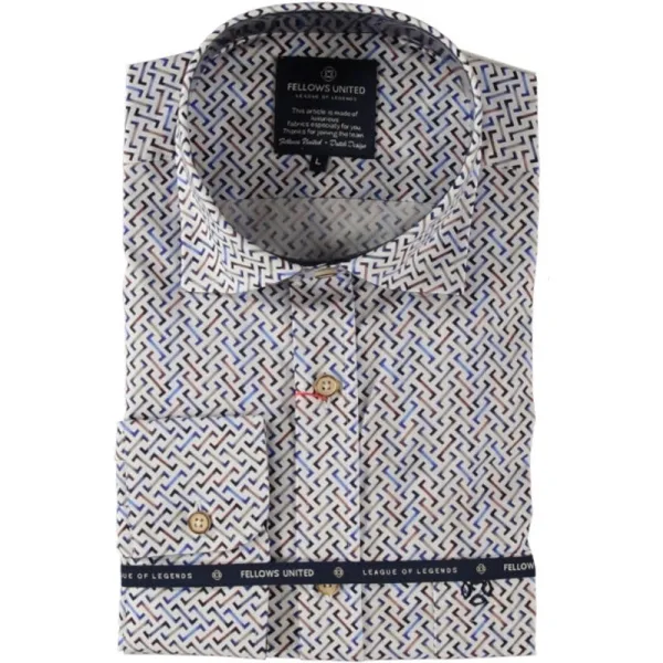 Casual heren overhemd met lange mouwen van Fellows United. Modern fit Borstzakje 100% Katoen Kleurnummer: 118