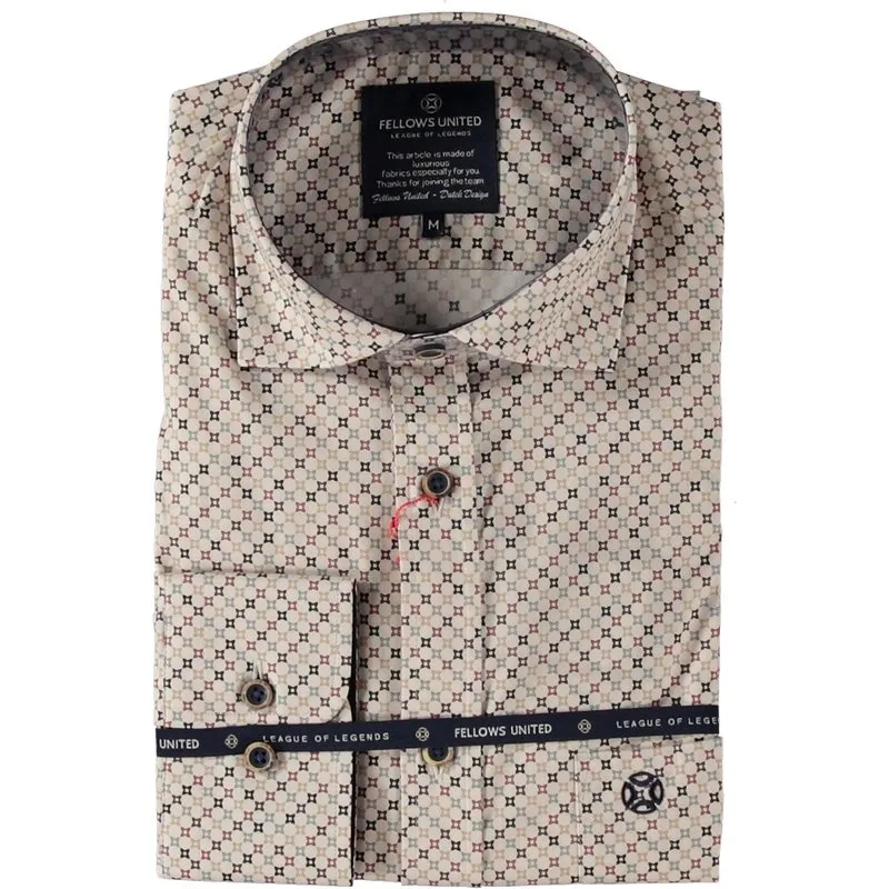 Katoenen heren overhemd met lange mouwen en een allover print van het merk Fellows United. Dit overhemd heeft een sportieve onopvallende button-under kraag en handig borstzakje. Modern fit Borstzakje 100% Katoen Kleurnummer: 181